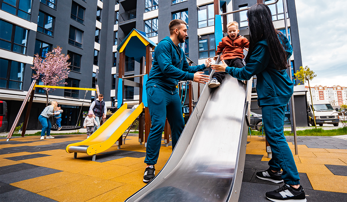 Простір для розвитку та дозвілля. На території житлового комплексу передбачені спортивні майданчики для мініфутболу та баскетболу. Окремої уваги варті й дитячі майданчики. Там є спеціальне м’яке покриття, яскраве оформлення, зони з інтерактивними елементами – все для цікавого та безпечного дитинства.