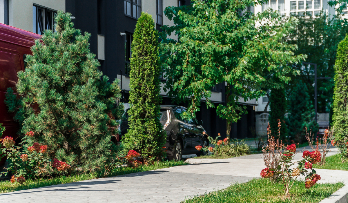 У Comfort Park архітектори розмістили секції таким чином, що вони утворюють напівзакриті подвір’я, ізольовані від автотранспорту та міського гаму. Пішохідні доріжки викладені бруківкою, на території висаджені рослини та дерева, які створюють приємне ландшафтне оформлення. Відпочинкові зони з лавочками – стануть ідеальним простором для безпечних прогулянок з дітлахами, ранкових пробіжок чи вечірнього променаду зі своєю половинкою.