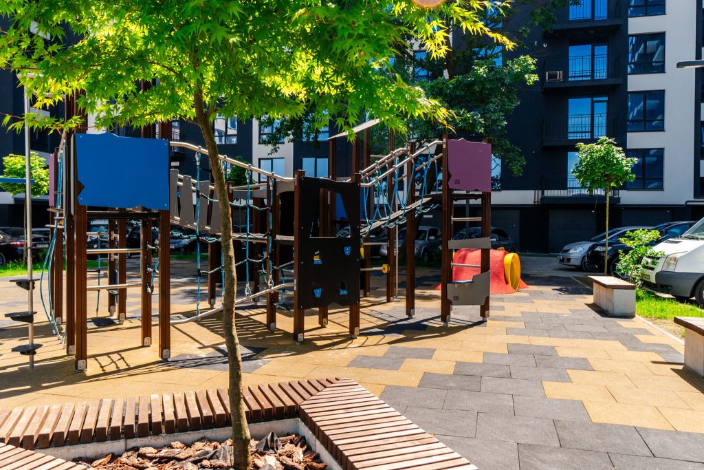 Житловий комплекс уже має сформоване комфортне середовище для життя. Більша частина прибудинкової території якісно облаштована: встановлені дитячі майданчики, сучасне вуличне освітлення, лавочки для відпочинку, передбачене озеленення. У кожній секції — стильні, просторі холи з якісними ліфтами, поштовими скриньками, кімнатами для зберігання дитячих візків та велосипедів. Тут вже видно, як простір живе й функціонує насправді.