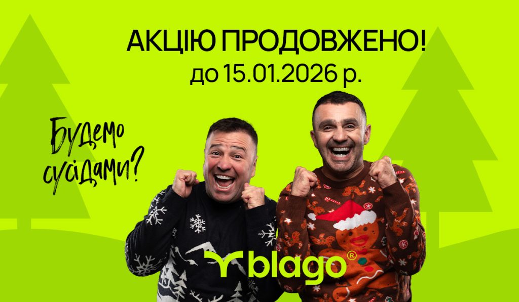 Святкова атмосфера у blago триває довше, ніж зазвичай. Різдвяну акцію з вигідними умовами на придбання нерухомості продовжено до 15 січня 2026 року.